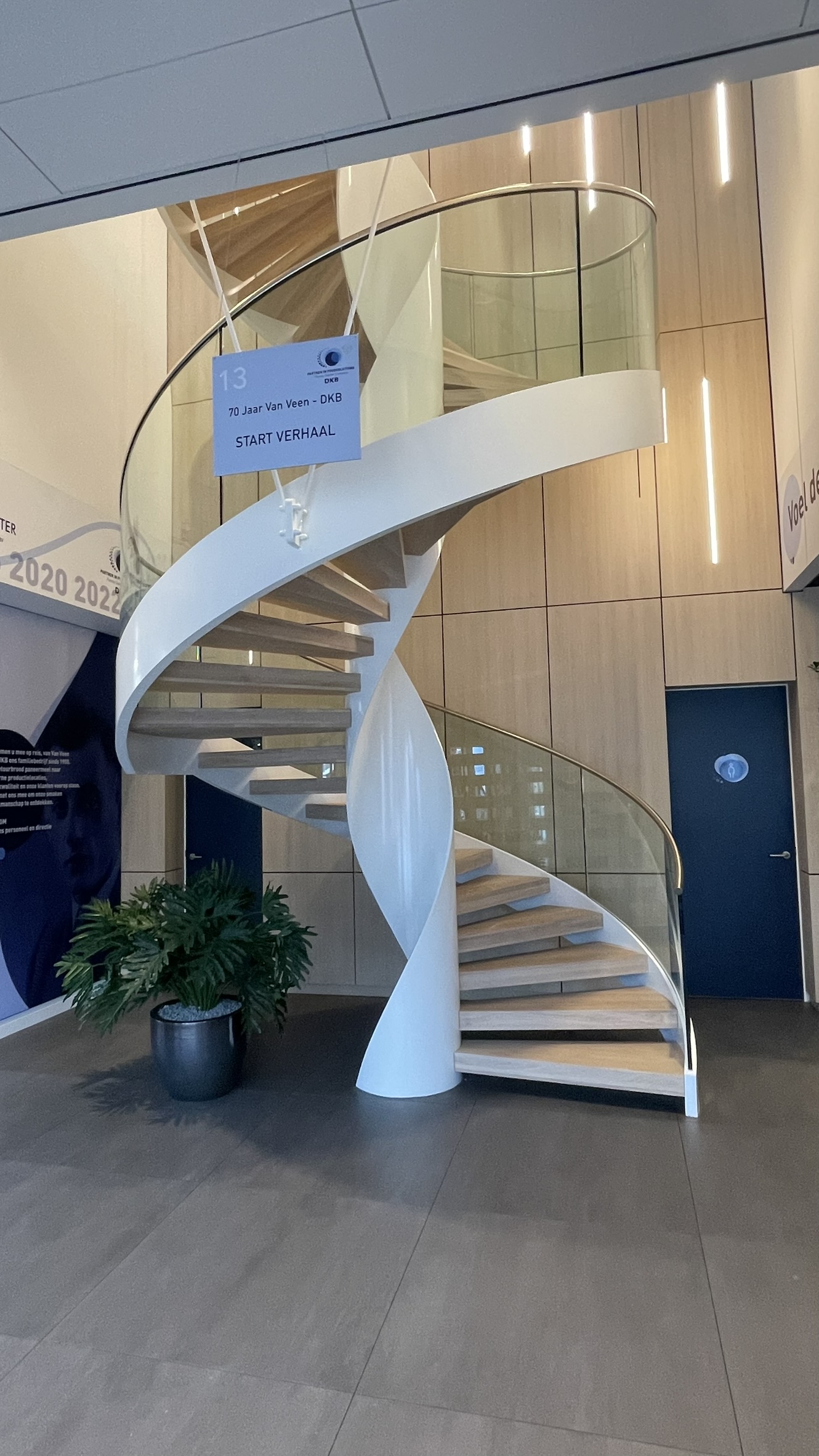 Vorige Volgende Trappen in stijl voor Fire Prevent BV Hazeleger leverde trappen met eikenhouten treden en stalen leuningen voor het volledig verbouwde pand van Fire
